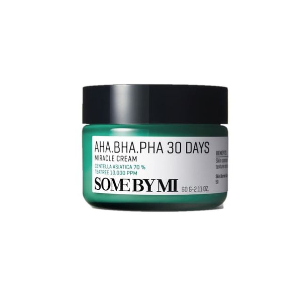 Experience a miracle in just 30 days with SOME BY MI - AHA, BHA, PHA Cream. This skin-transforming formula contains AHA, BHA, PHA and Centella Asiatica, which work together to promote healthy skin regeneration. Safe for sensitive skin types, it soothes inflammation, reduces acne, exfoliates dead skin and pores, and replenishes moisture balance. Achieve a flawless complexion with this must-have miracle cream.